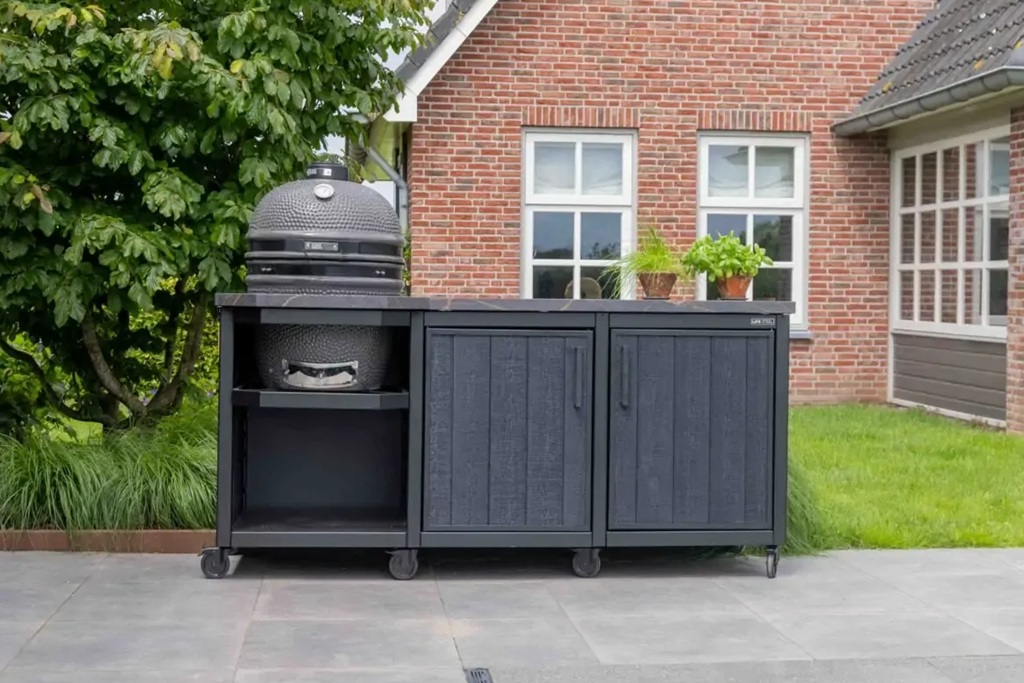 These colour options allow you to match your outdoor kitchen to the unique ambiance of your garden. With maintenance-free composite boards and a durable steel structure, the Ibiza line offers a robust yet refined choice for your outdoor space.
